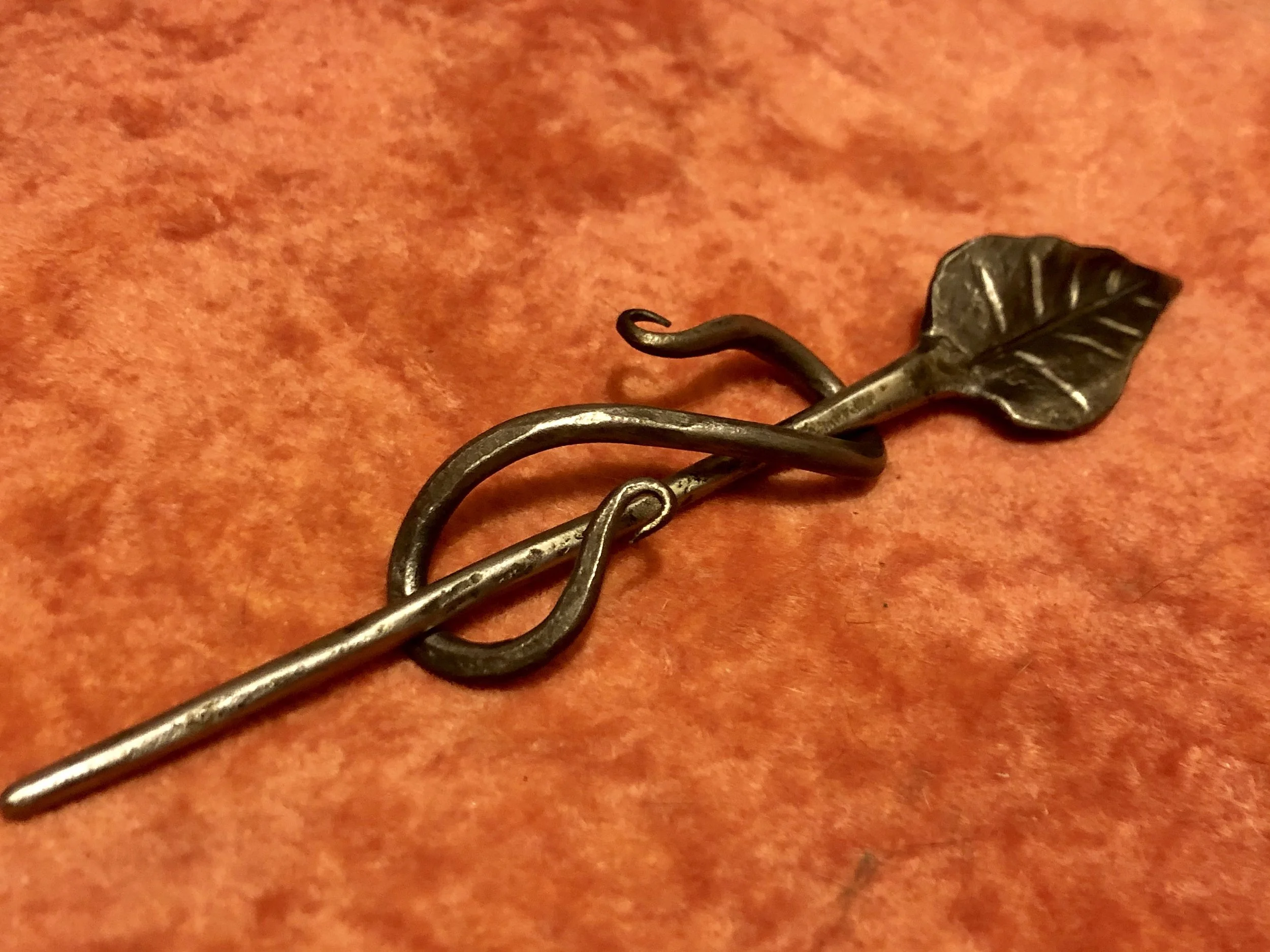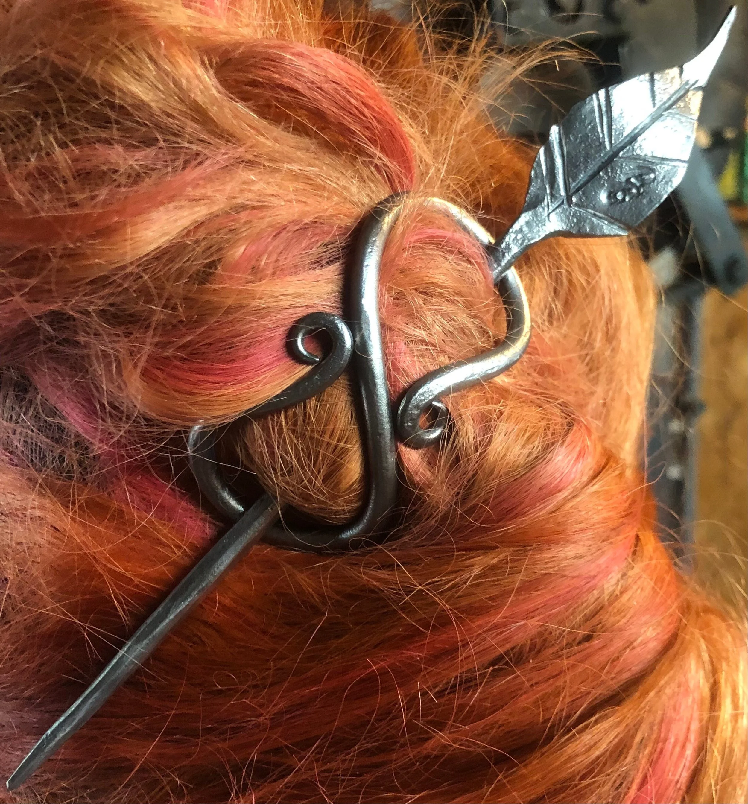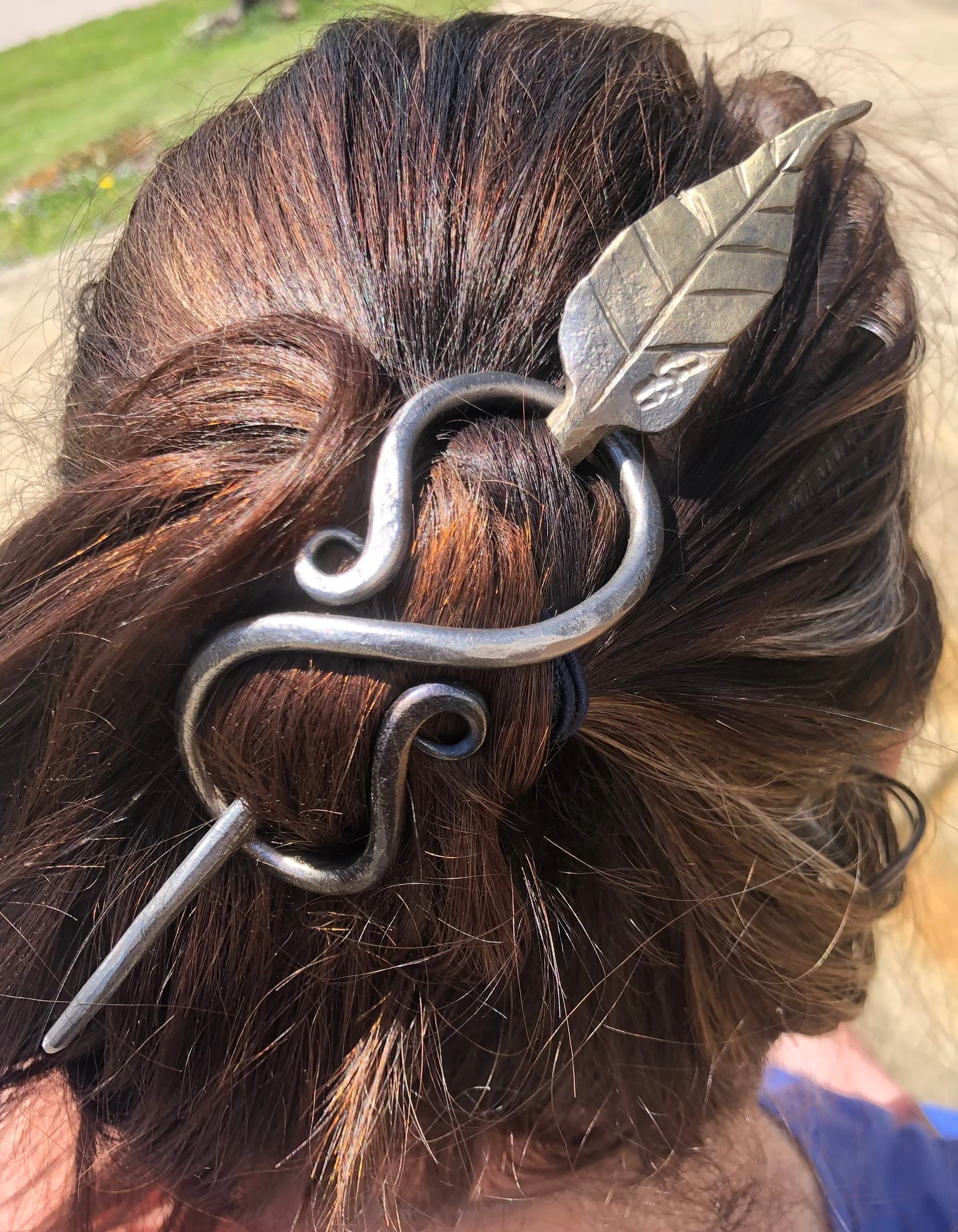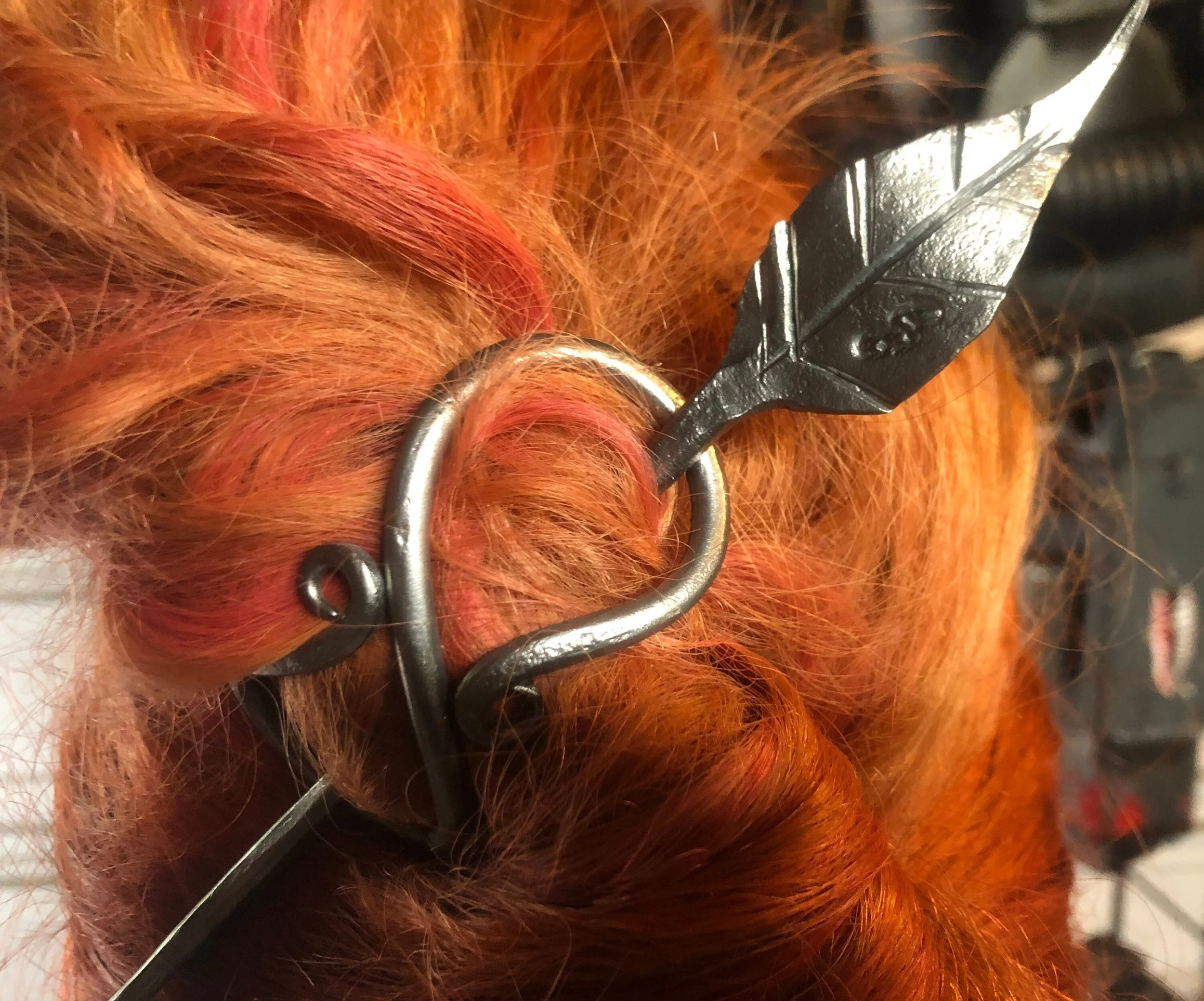 Hand Forged Leaf Hairpin and Barrette Hand Forged Iron Steel Blacksmith made Ohio made Appalachia RenFaire Renfest Wearable Art
